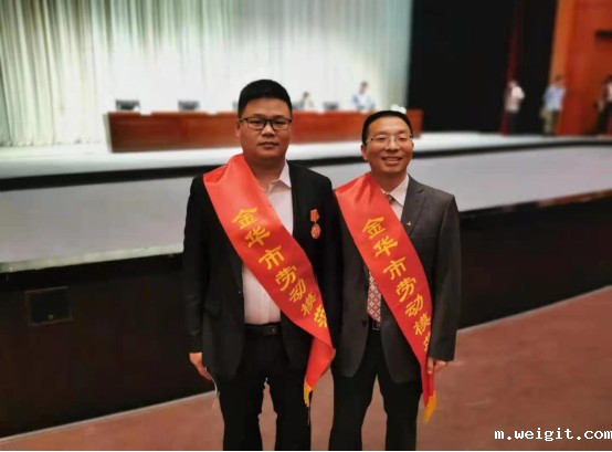 金华市举行劳动模范和模范集体表彰大会,机电学院老师胡新华和毕业生何帅伟同台领奖