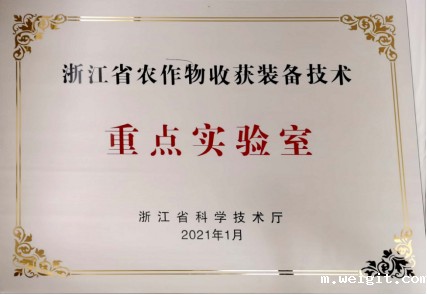 获评浙江省农作物收获装备技术重点实验室