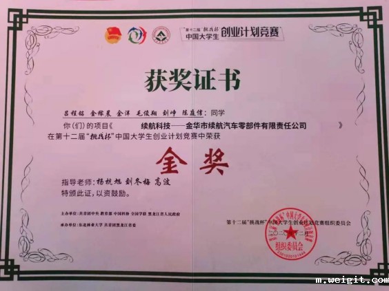 第十二届“挑战杯”中国大学生创业计划竞赛全国决赛获金奖